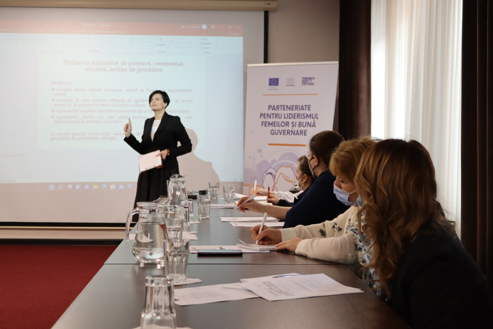 Jurnalistul și expertul în comunicare Mircea Surdu a condus o sesiune practică despre importanța participării la dezbateri TV și, mai ales, cum își pot cizela participantele discursul. Tehnicile împărtășite de jurnalist s-au referit la regulile dezbaterilor electorale, la realizarea discursurilor într-un limbaj accesibil și, mai ales, într-o manieră respectuoasă inclusiv față de contracandidați și contracandidate. Experta în protocol Natalia Ipati a moderat sesiunea despre regulile de comportament în cadrul întâlnirilor oficiale. Participantele au primit sfaturi pe care le vor putea aplica inclusiv în timpul ședințelor cu delegații internaționale.